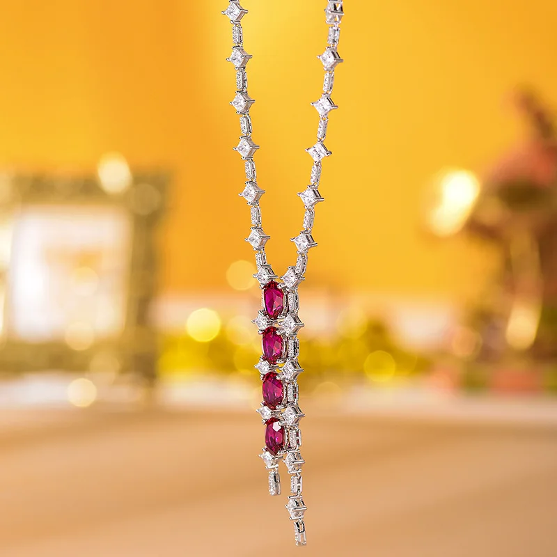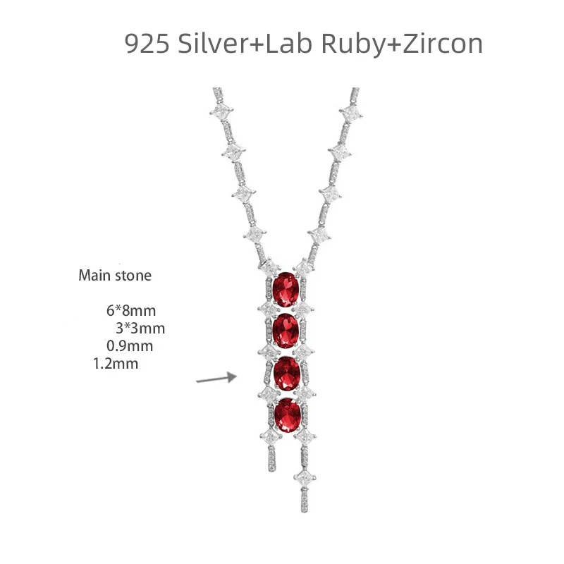 Ruizuan 6 Carat Lab Grown Ruby Necklace Jewelry Making Supplies Wholesale 925 Sterling Silver Gemstone Jewellery
