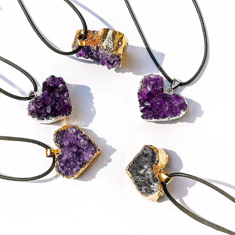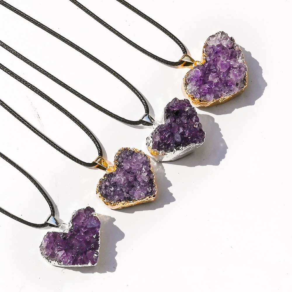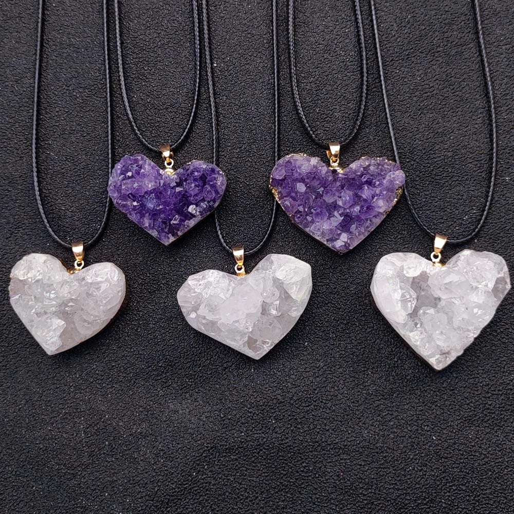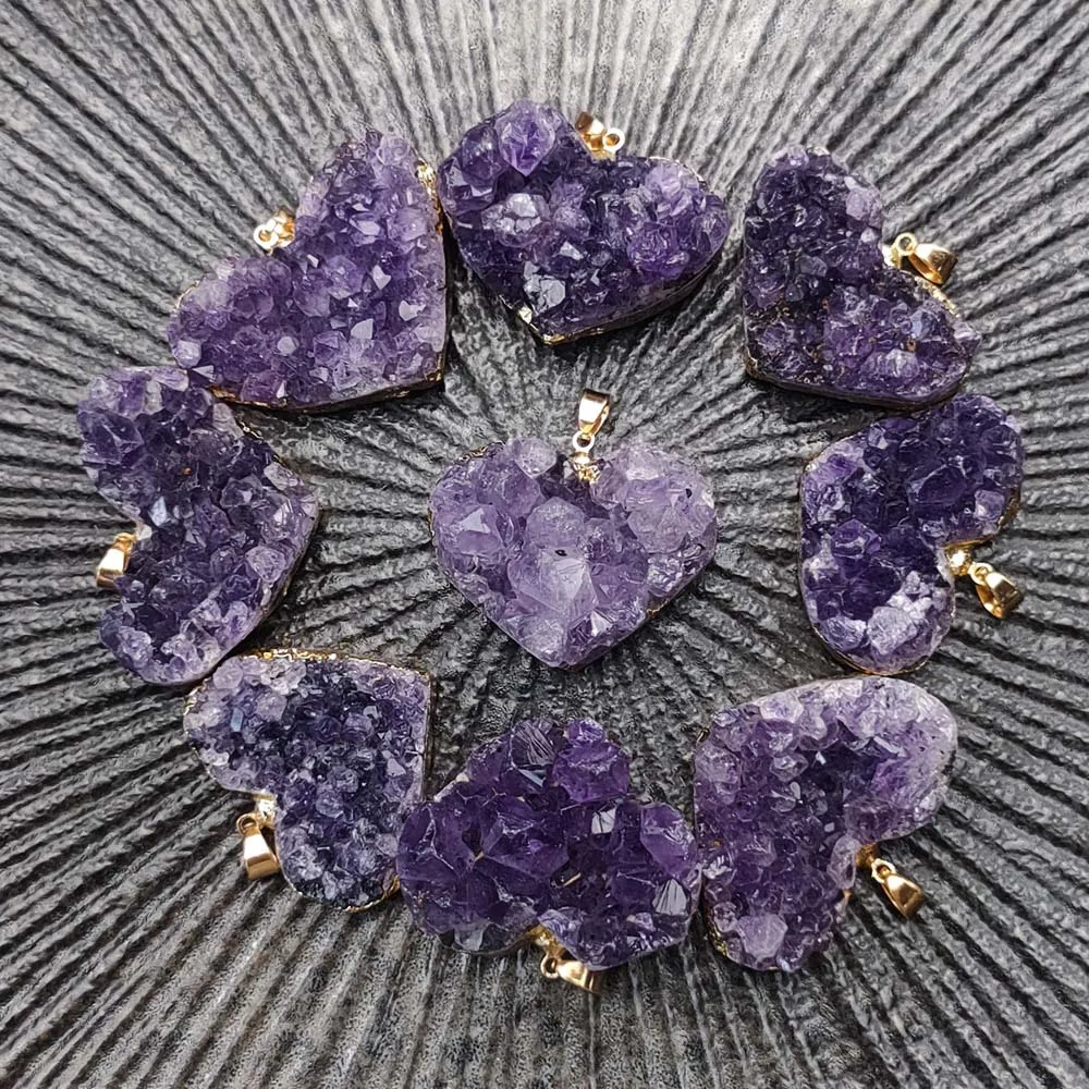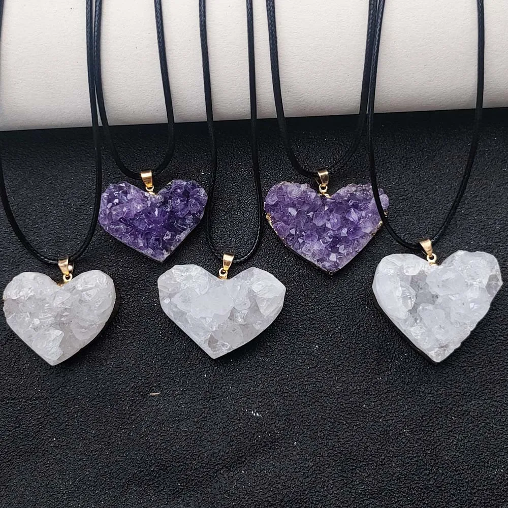 Uruguay Natural Amethyst Cluster Pendant White Crystal Irregular Tooth Cave Heart-Shaped Necklace Gemstone Material