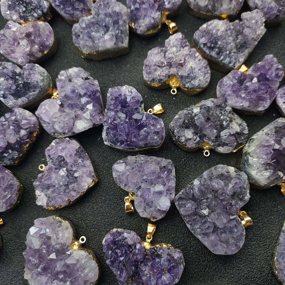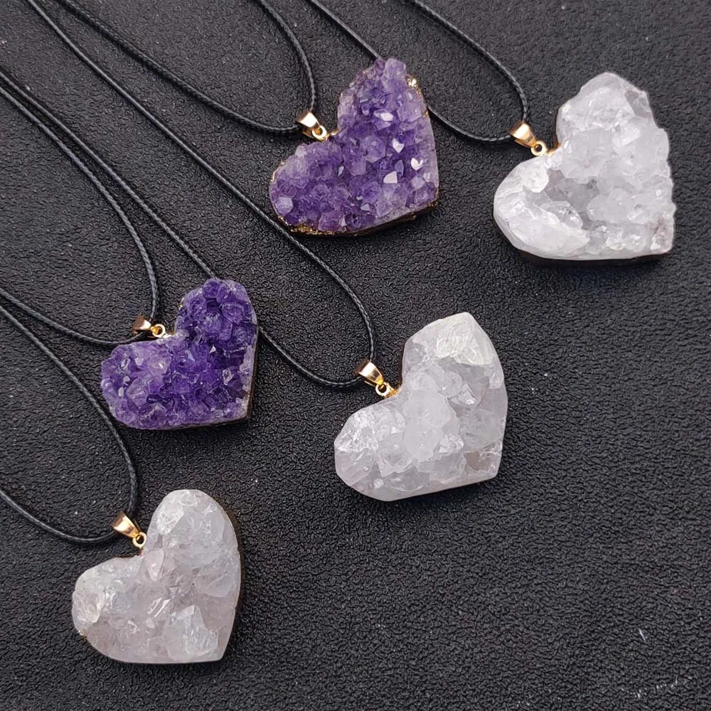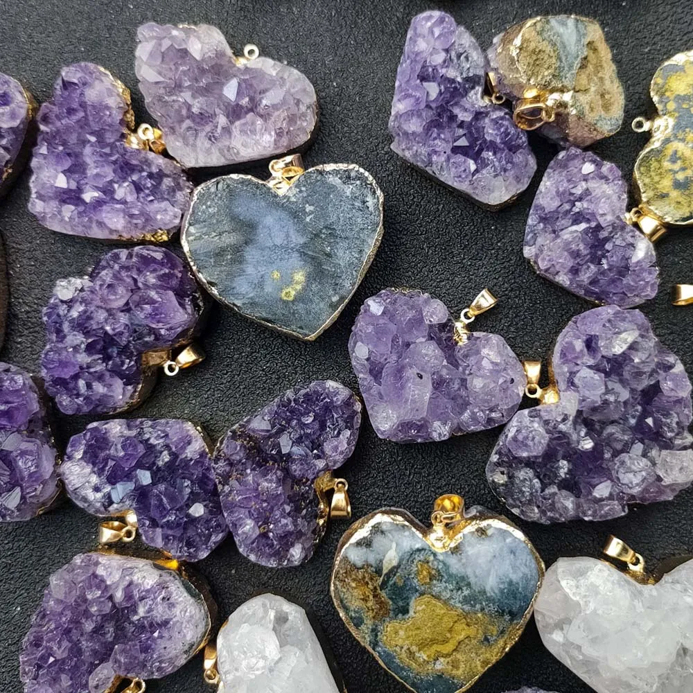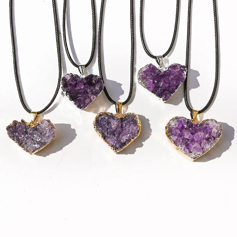 Uruguay Natural Amethyst Cluster Pendant White Crystal Irregular Tooth Cave Heart-Shaped Necklace Gemstone Material