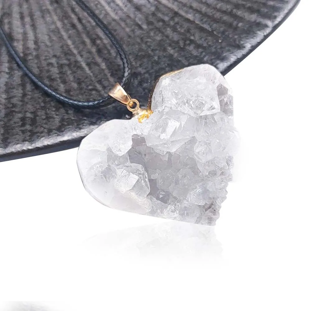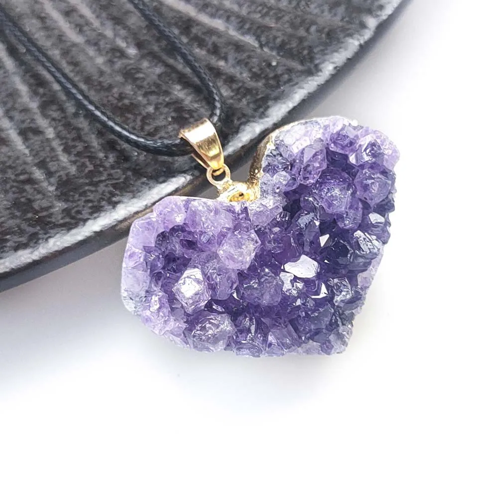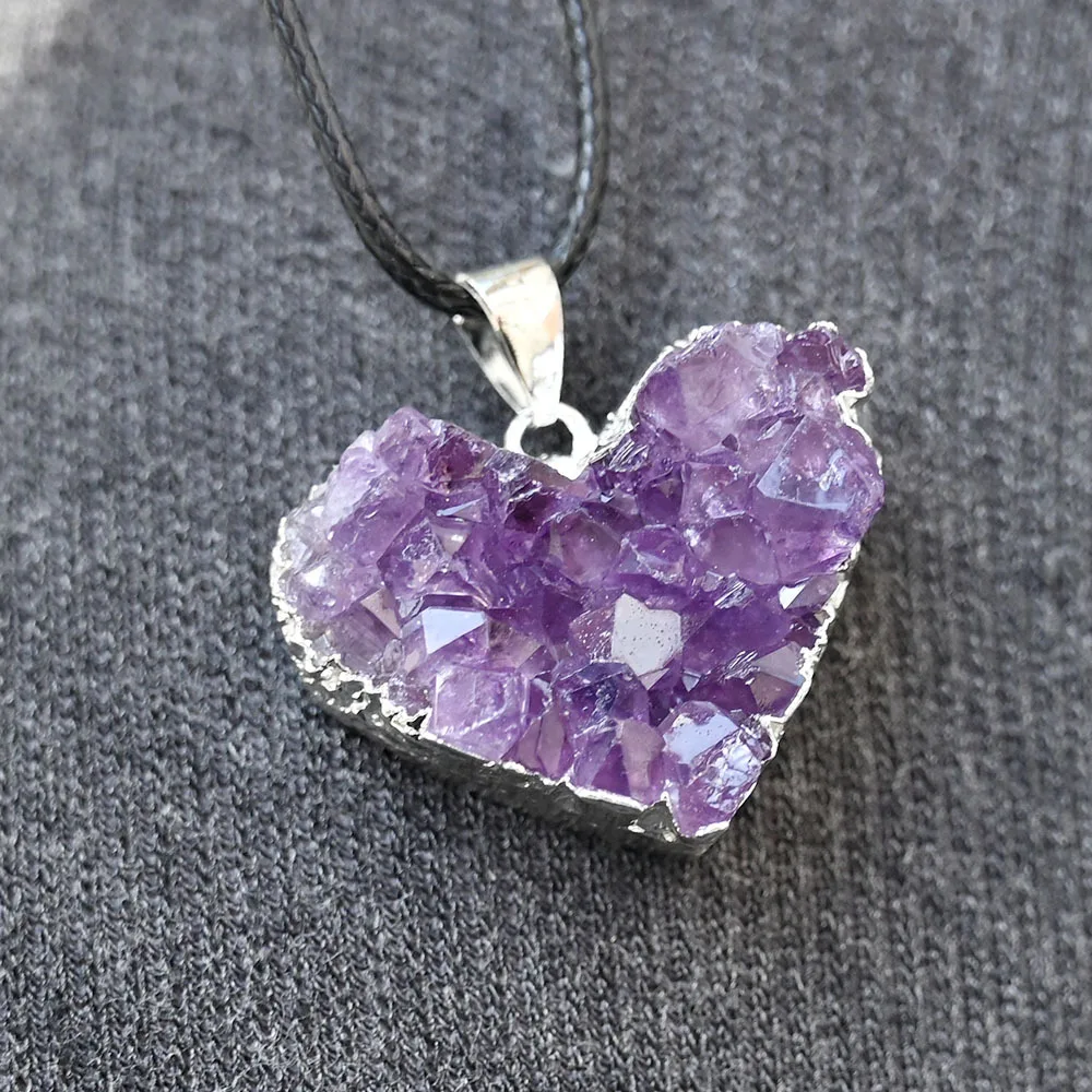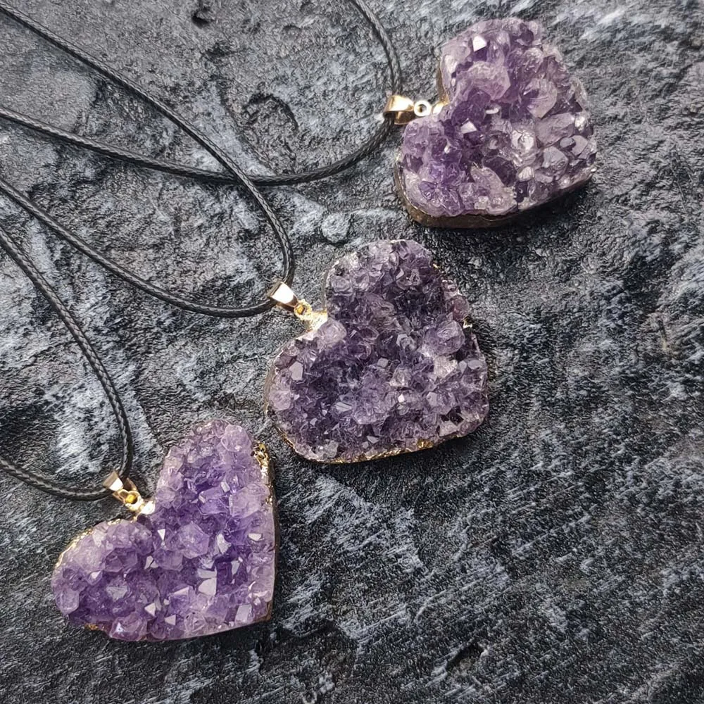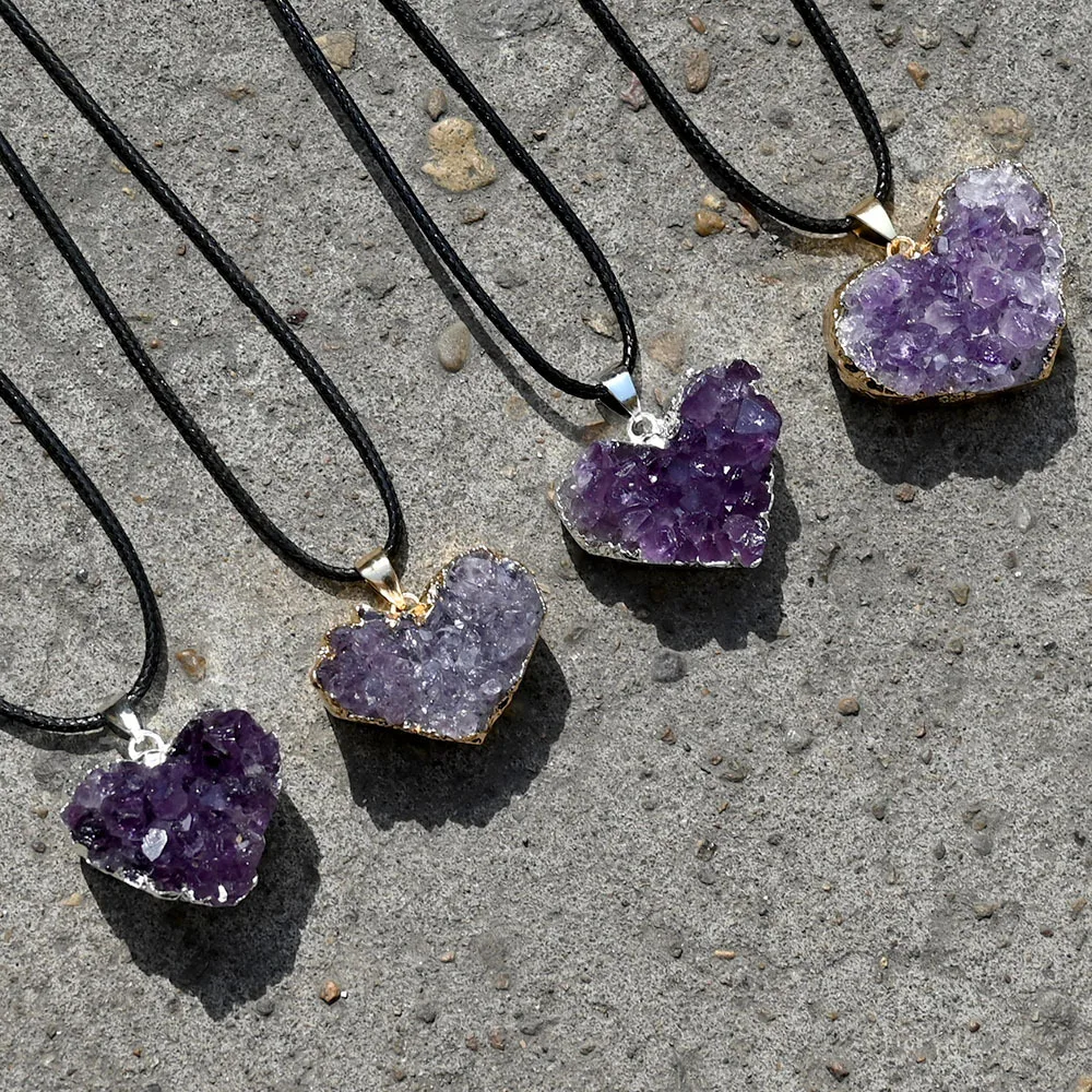 Uruguay Natural Amethyst Cluster Pendant White Crystal Irregular Tooth Cave Heart-Shaped Necklace Gemstone Material