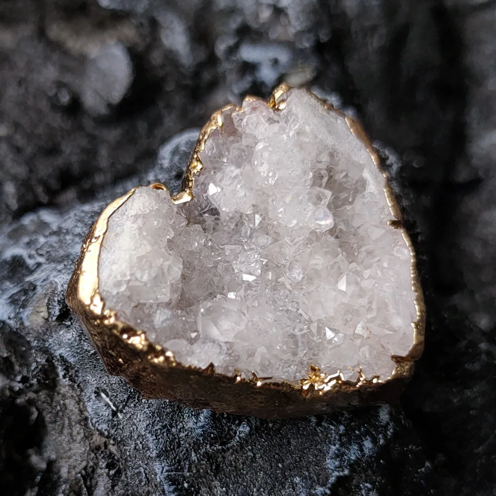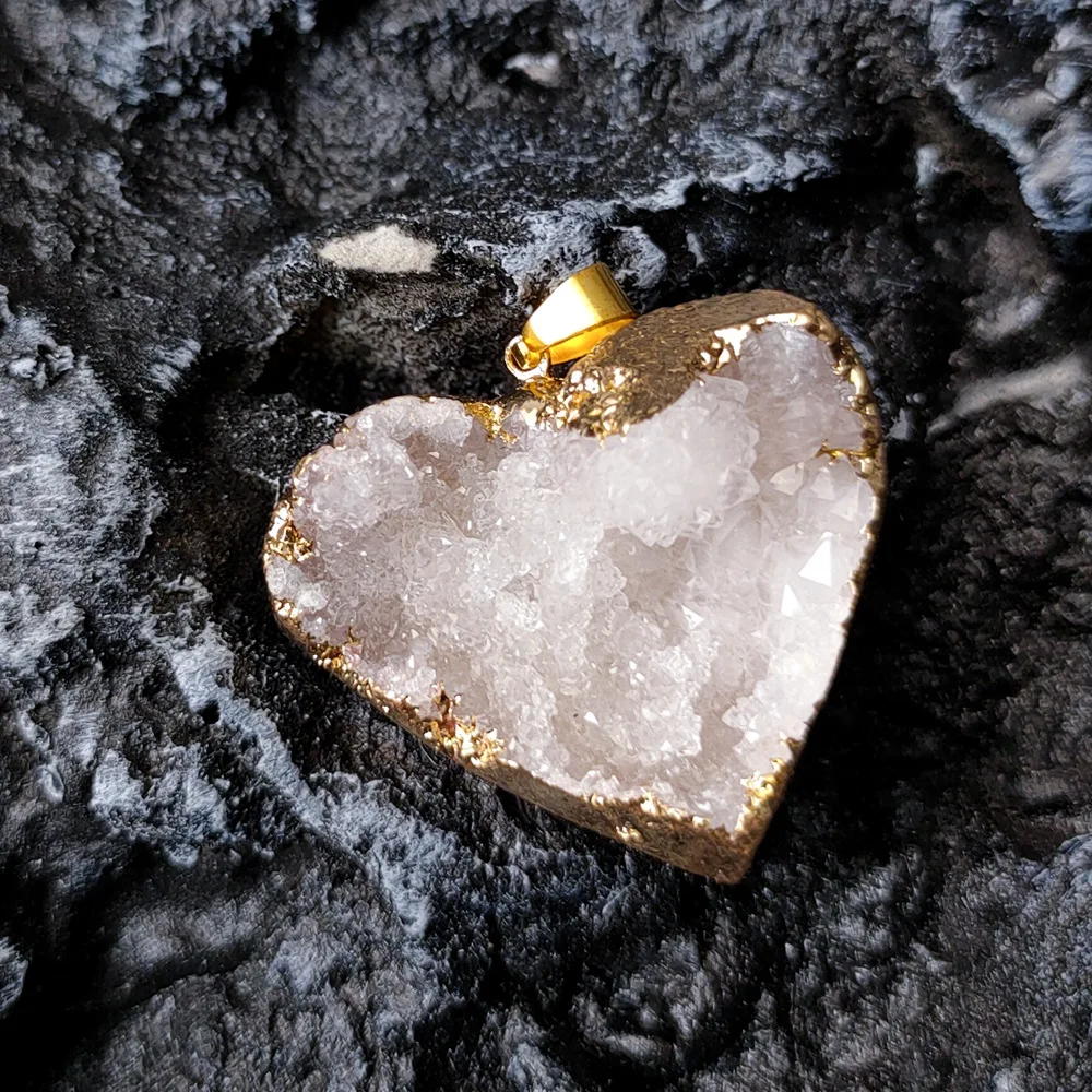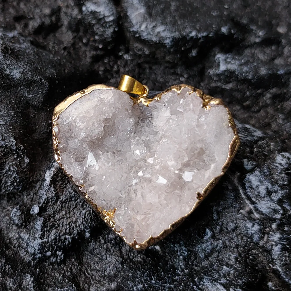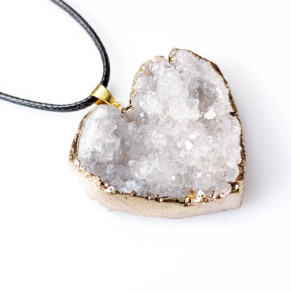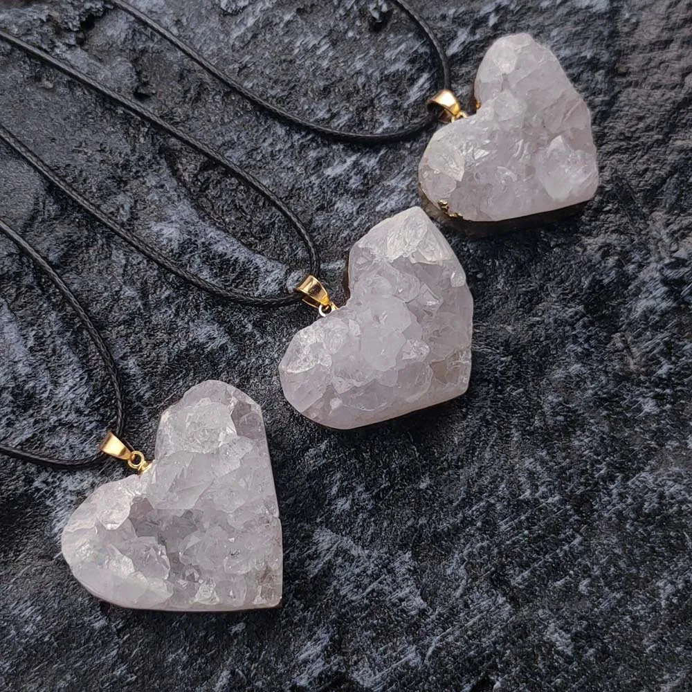 Uruguay Natural Amethyst Cluster Pendant White Crystal Irregular Tooth Cave Heart-Shaped Necklace Gemstone Material